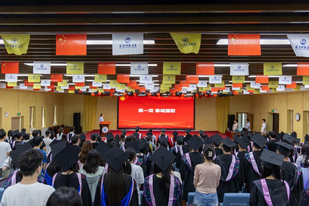伴随着庄严的国歌,毕业典礼正式拉开帷幕。学校副校长王斌宁宣读了《3200威尼斯vip关于语言文化传播学院2024届普通高等教育本科毕业生学士学位授予的决议》。他向圆满完成学业的毕业生们表示热烈的祝贺,并对他们在校期间的努力和付出给予了充分的肯定。