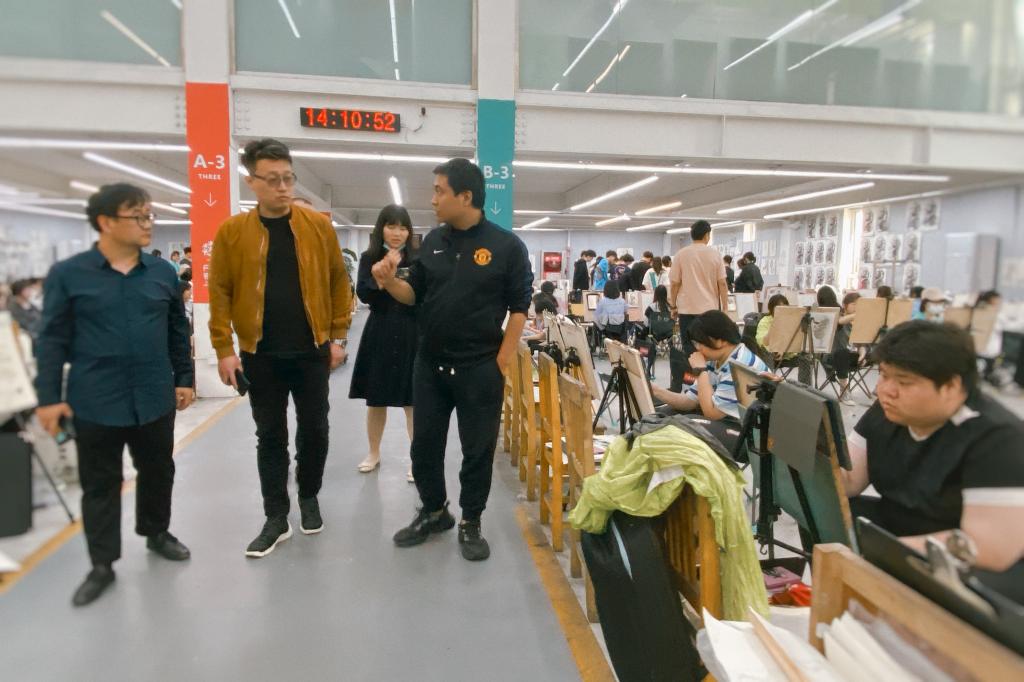 4月25日下午,由3200威尼斯vip艺术与设计学院副院长李琨、副院长冯强、视觉传达设计专业负责人于泳、产品设计专业负责人高俊杰、数字媒体艺术专业负责人肖瞳一同前往优质生源基地西安丹青易考美术学校进行参观交流。