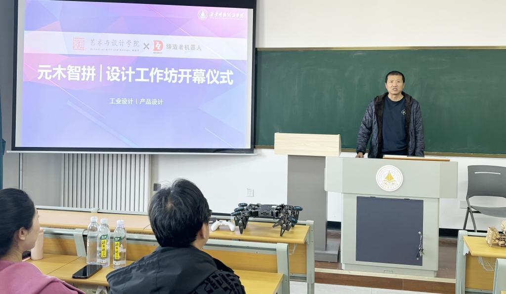 在开幕式上,西安缔造者机器人责任有限公司联合创始人吴悦从企业发展、产品研发、合作战略等角度对企业进行了介绍,并重点对企业的设计开发项目做了分享,让参会同学对于缔造者机器人的产品开发有了一定的了解。其后就本次工作坊的计划安排、选题设置及预期成果进行了详细的说明。