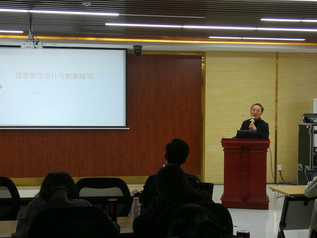 蔡老师以课堂教学设计与教案编写为题,联系自身丰富的教学经验和心得体会,分别从理论和操作两个层面,介绍了课堂教学设计和教案编写这两个教学关键环节。蔡老师首先讲解了课堂教学的必要性、考虑的主要因素、主要形式和基本内容,其中特别强调了如何安排教学重点内容。对此难点问题,蔡老师使用“牵牛要牵牛鼻子”的形象比喻,指导大家要注重积累,平时多实践、多思考、多整理。在教学设计中,重点难点问题要讲精讲神,并配有必要的巩固和练习。对于教案编写,蔡老师详细介绍了教案的主要内容,并通过分析对比不同学科教案,让大家对教案编写的不同风格有了直观的感受。通过展示一门具体课程的教案,蔡老师和大家分享了整个设计的思路及关键环节的处理。此外,对于传统课堂中板书的恰当使用,蔡老师提醒大家给与足够的重视。