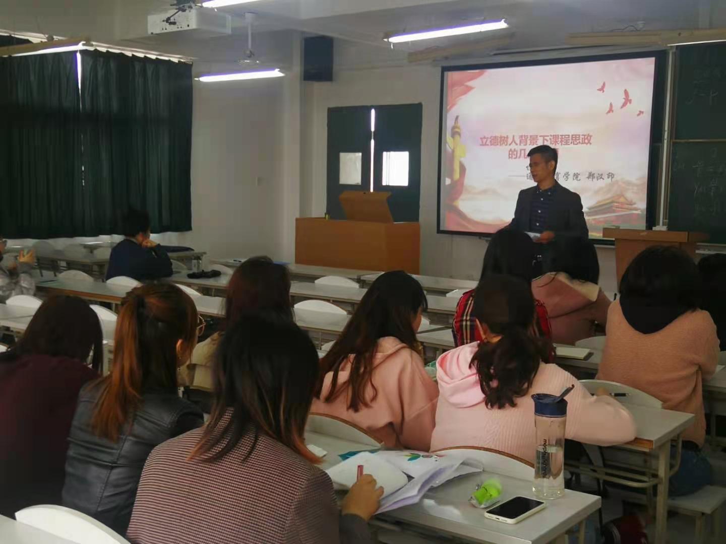郑老师以立德树人背景下课程思政的几个问题为题,依据为什么、是什么、怎么做的逻辑顺序,不仅从宏观政策层面对课程思政进行深入解读,对于在具体专业课程中如何开展课程思政,更加深入地从实践层面进行了指导并提出了建议。首先结合国家重大教育政策出台,介绍了立德树人与课程思政提出的背景和要求。分析了专业课教师对课程思政认识的误区,进而提出破解专业课教师“课程思政之惑”的指南。最后针对专业课教学中如何融入“思政元素”,郑老师提出了具体操作方法,同时分享了自己的思考心得。