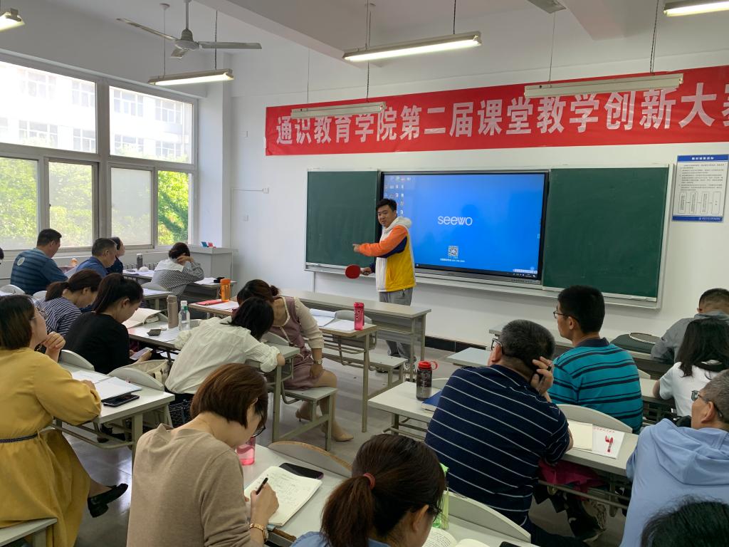 5月20日,通识教育学院于育德楼109教室举办第二届课堂教学创新大赛,本次比赛共有9名教师参赛,其余教师也到场观摩了本次比赛。