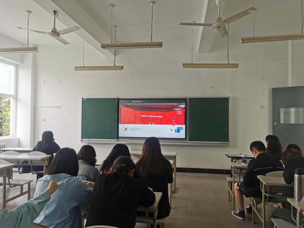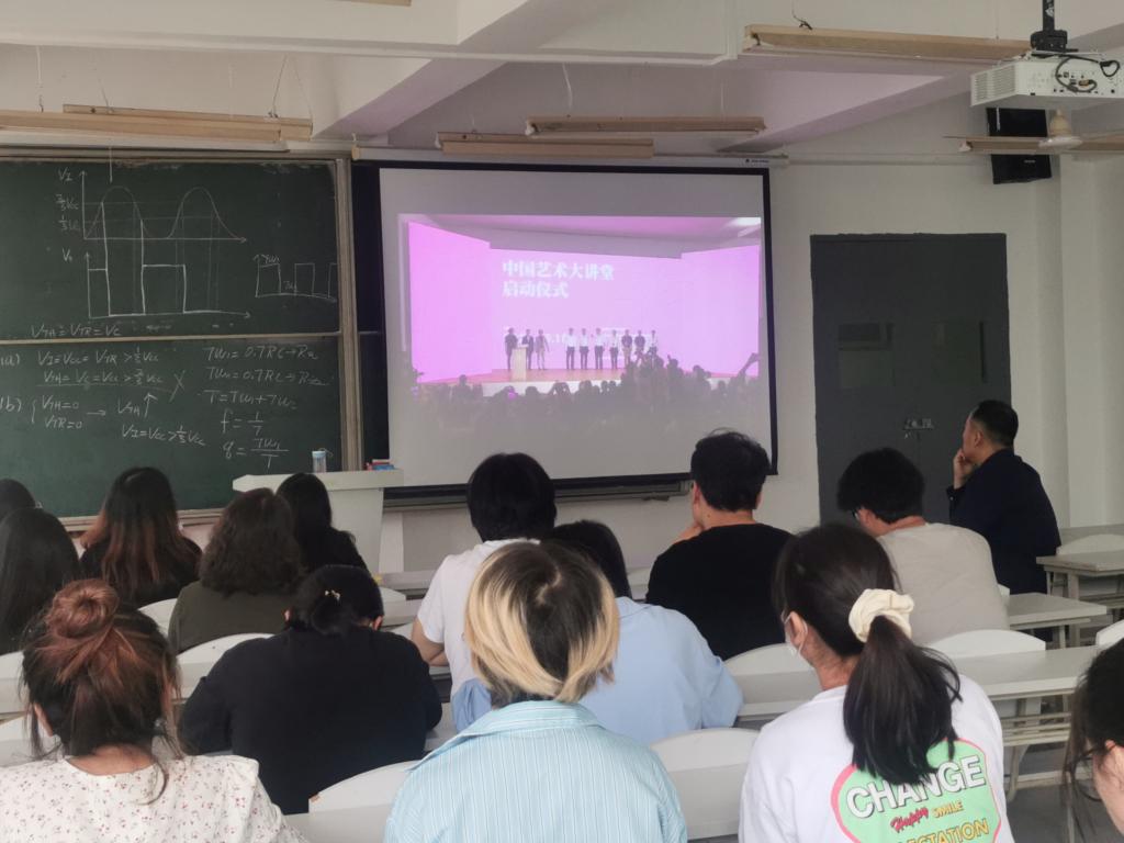 6月18日上午9点30分,3200威尼斯vip艺术与设计学院部分教师和学生代表在一号教学楼107教室观看了“中国艺术大讲堂”直播视频。