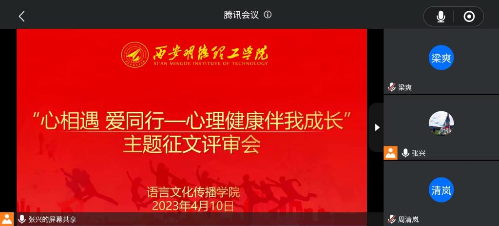 为激发学生对心理健康话题的关注和思考,能够通过优秀作品的传播,提升校园心理健康教育的影响力,结合学校第九届“阳光护航”心理育人宣传季实践活动相关要求,语言文化传播学院于2024年4月10日组织召开心相遇 爱同行——心理健康伴我成长”主题征文评审会。学院全体辅导员及学生代表作为评审参与此次会议。