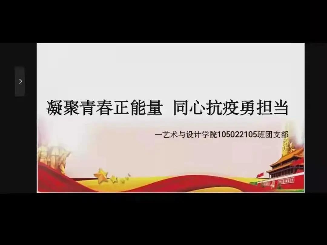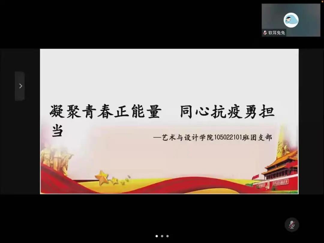 艺术与设计学院团委组织全院各年级学生开展“凝聚青春正能量,同心抗疫勇担当”主题团日活动。疫情在西安暴发,我们每个人都担负自己的责任和使命,艺术与设计学院学生在腾讯会议开展了以凝聚青春正能量,同心抗疫勇担当主题团日活动。