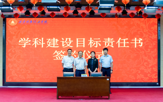 王志刚校长与学科首席专家代表马庆林教授、桑晓靖教授、韩立锋副教授分别签订学科建设目标责任书。学科首席专家代表周欣表态发言,表示将带领团队以培养一流人才、产出一流成果为目标,统筹规划学科建设、专业建设、平台建设、团队建设,打造明德科研品牌,实现学科专业建设成果新突破。