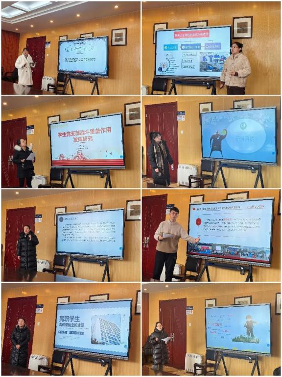 会上,8位辅导员分别以新媒体时代高校辅导员思想政治工作创新、辅导员工作室在辅导员队伍建设中的作用研究、学生党支部战斗堡垒作用发挥研究、大学心理健康教育及心理危机干预案例分析、资助育人长效机制的建立和立德树人有机融合、共青团引领青年在校园文化建设中的作用、高职学生高质量就业的途径、退伍大学生发挥军队优良传统及示范效应为题进行交流分享。