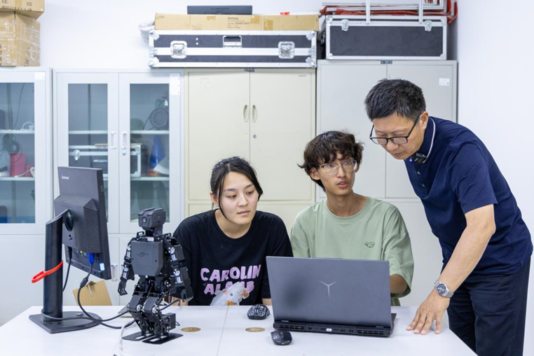 为增强学生的实践能力和职业素养,他还积极寻求与校外机构合作,让学生接触到行业前沿的技术和应用,通过不用平台、不同方式加强团队成员之间的知识交流和思想碰撞,让不同背景和思维方式的学生相互启发,共同探索机器人领域的未知,进一步拓展创新的边界。
