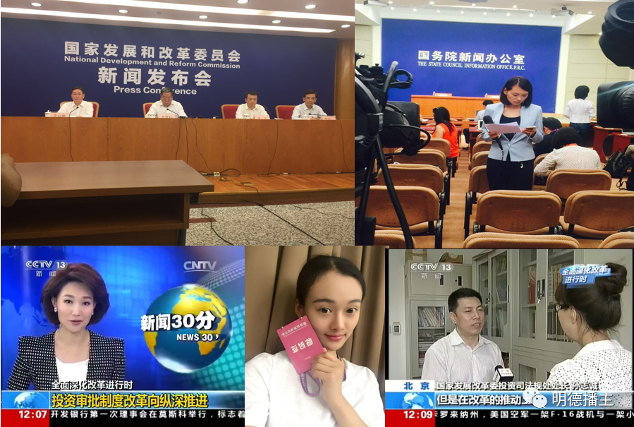 2012级孙源婧在中央电视台《新闻联播》担任实习记者工作照,采访并报道国家发展和改革委员会新闻发布会